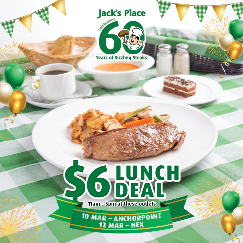 Promotions Eatzi Gourmet SteakhouseJack's Place $6 Lunch Deal Selected outlets on selected days Jack's Place Surf & Turf Classics 2 Mar to 30 Apr 2026 Eatzi Gourmet Steakhouse Surf & Turf Classics 2 Mar to 30 Apr 2026 Eatzi Gourmet Steakhouse Ramadan Set Meal Now to 20 Mar 2026 Jack's Place Happy Hour 1-FOR-1 Mon to Fri, 2:30 pm to 5 pm @ Selected Outlets Eatzi Gourmet Steakhouse Happy Hour 1-FOR-1 Mon to Fri, 2:30 pm to 5 pm Jack's Place N.Z. Ribeye Steak Weeknight Specials Selected Days from 5pm Eatzi Gourmet Steakhouse N.Z. Ribeye Steak Weeknight Specials Every Mon from 5pm View More Promotions… e-Stores JP PepperdineGourmet Store Eatzi GourmetBakery JP PepperdineGift Vouchers flavours online(e-news) Eatzi GourmetCatering