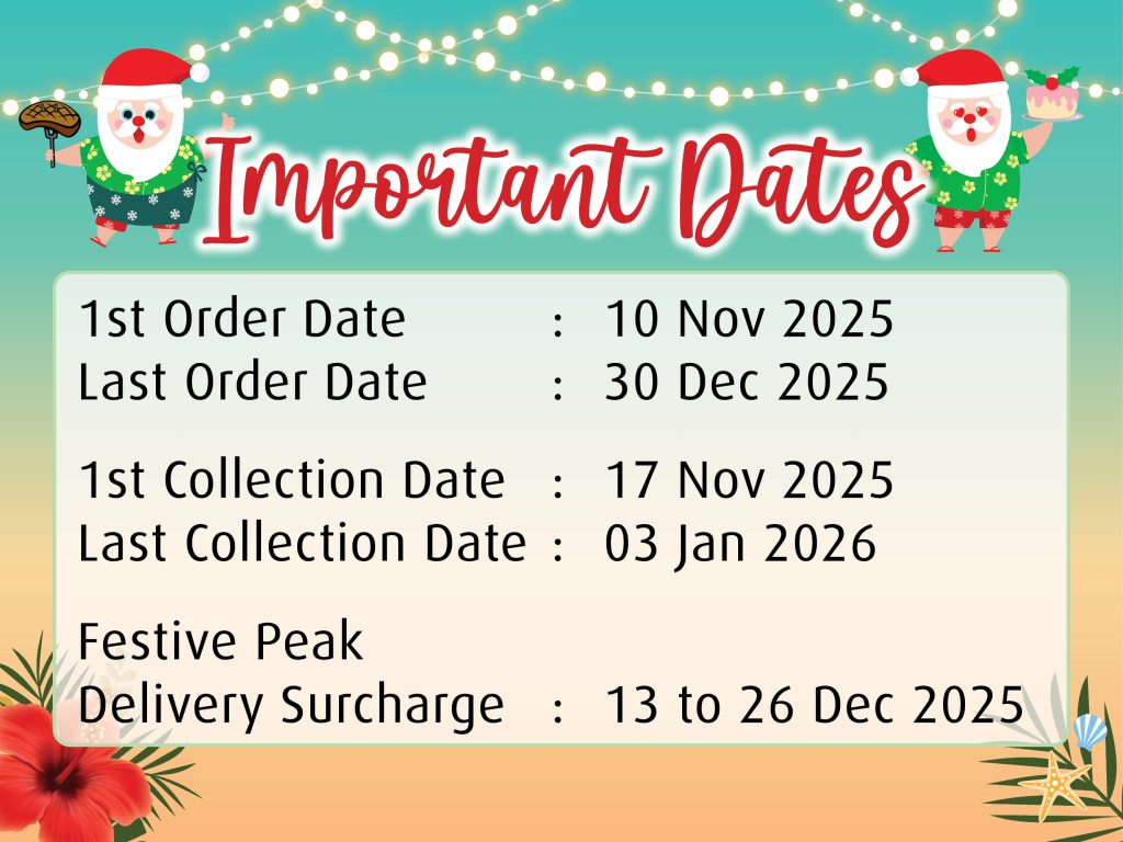 Celebrate this festive season with our selection of Roast U.S. Turkey or Roast Beef, along with our Festive Favourites such as Baked Chicken Ham & Cheese Sausage, Lobster Bisque and more…