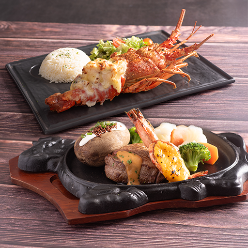 Indulge in our all-time favourite main courses – N.Z. Ribeye Steak, Barramundi Fish, T-Bone Steak, Chicken & Mushroom Alfredo and Trio Combo!